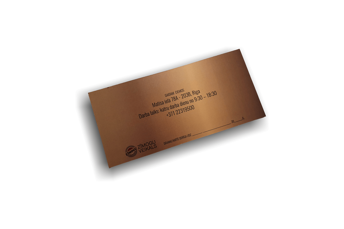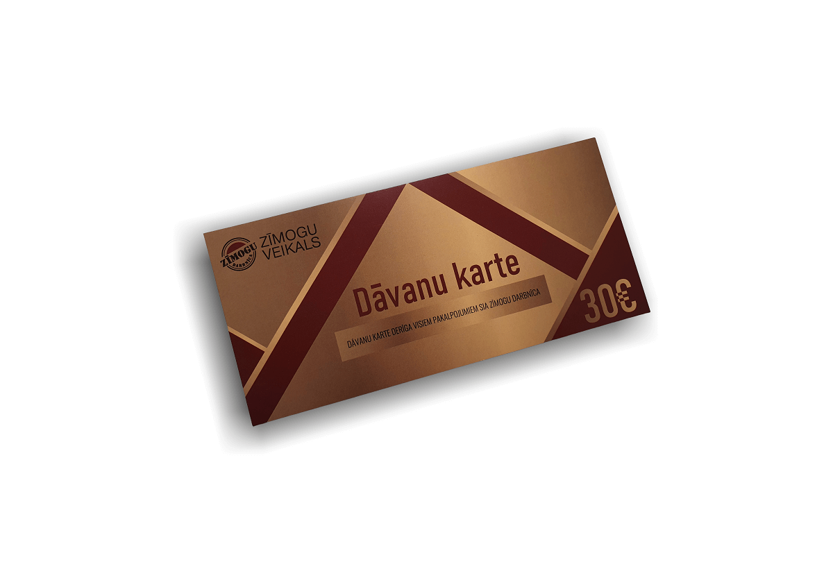 Купите подарочную карту номиналом 30 € и используйте её для оплаты любых товаров и услуг ZIMOGUVEIKALS.LV (печати, штампов, наклеек, табличек и др.).