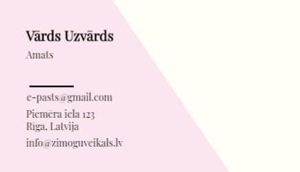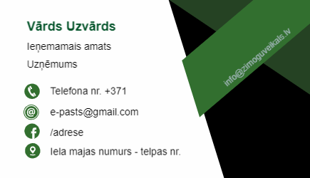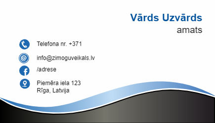 Если желаете заказать визитки с Вашего макета PDF, то заказать визитки без конструктора можно здесь ЛИНК, либо послать запрос на нашу электронную почту info@zimoguveikals.lv , также предлагаем услуги дизайна и макетирования.